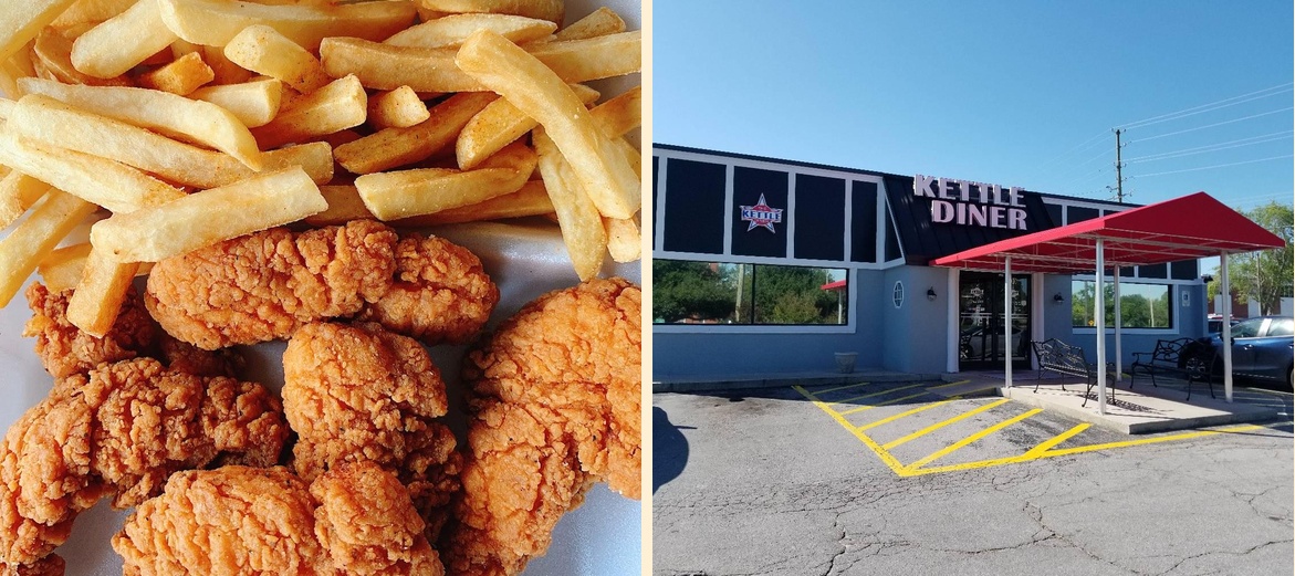 The Kettle Diner has a diverse menu. Enjoy breakfast all day, including chicken & waffles. Try local shrimp or classic Reuben. There’s something for everyone.